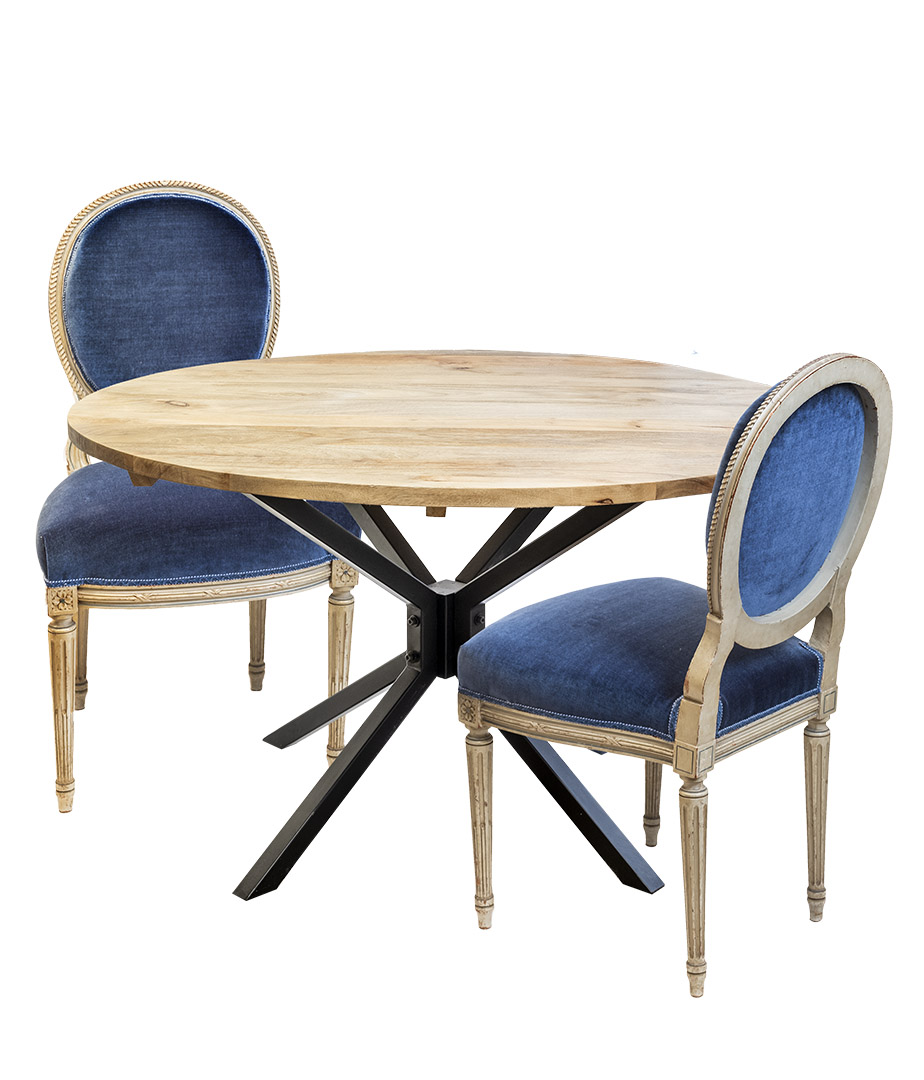 Mesa de comedor madera de mango con pata de hierro. Diseño robusto y actual para espacios con estilo.