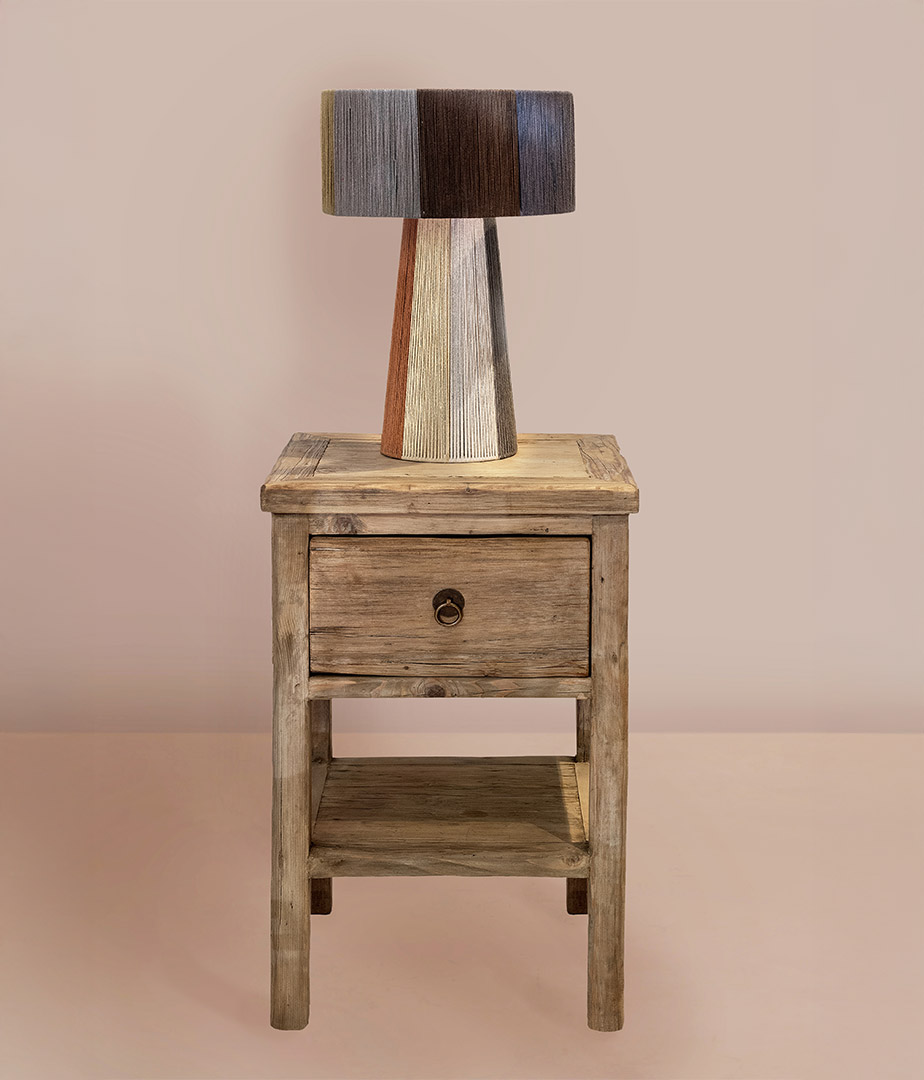 Mesita de madera recuperada natural. Diseño cálido y funcional aporta carácter y autenticidad al dormitorio perfecta para combinar con piezas contemporáneas.